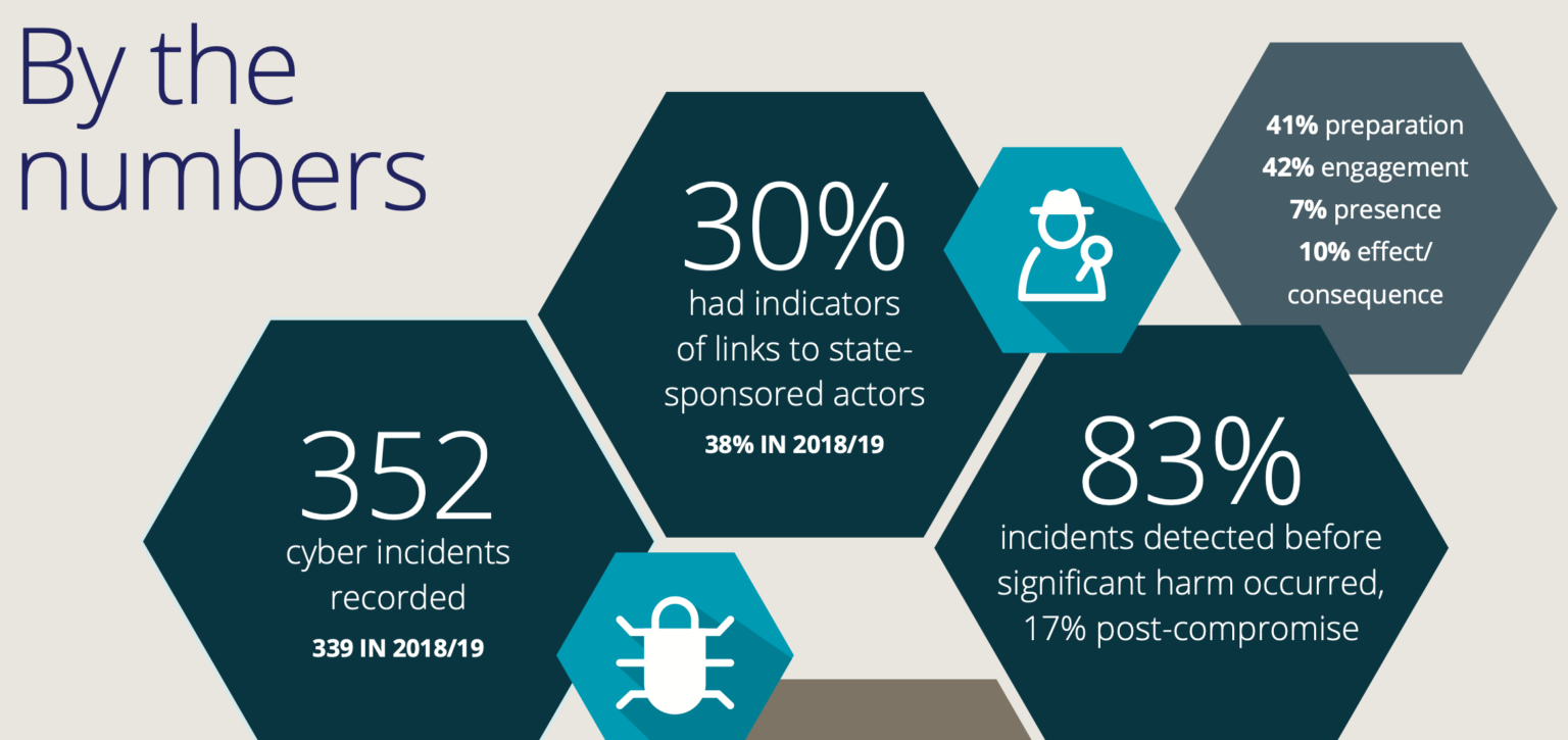 From 1 July 2019 to 30 June 2020, the NCSC recorded 352 cyber security incidents compared with 339 incidents in the previous 12 months. Of those incidents recorded, 30 percent were able to be linked to state-sponsored actors.