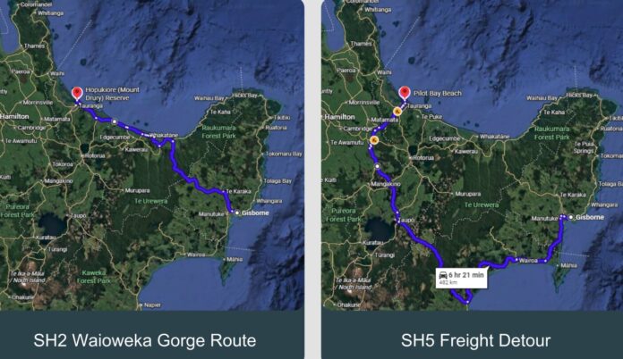 Transporting New Zealand Membership Manager, Lindsay Calvi-Freeman says the closure will add 211 kilometres and nearly three hours to a truck journey between Gisborne and Tauranga detouring on State Highway 5.